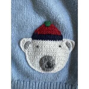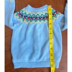 Mini Boden Fair Isle Yoke Dusty Blue Bear Cardigan Sweater Button Up EUC 18-24 m