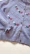 Charming lilac cardigan with floral embroidery. Features ruffled cuffs and hem. Excellent condition