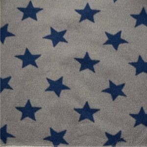 - Color-blocked red sleeves and hood with grey body with blue stars pattern lightweight fleece