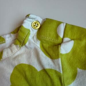 Size 1.5-2Y Mini Boden girls long sleeve graphic tee with a large pear graphic on front. The cutest retro floral print background. Button on shoulder/collar. Light cracking in the pear graphic, otherwise great shape! Made in 2010-2012 as part of the Retro fruit collection. 100% cotton.