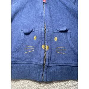 Mini Boden Girl 2-3 Toddler Navy Blue Hooded Zip Up Jacket Kitty Cat Pocket