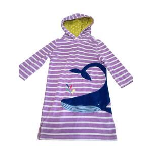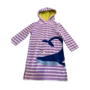 Mini Boden Girl 4-5 Hooded Swim Cover Up Applique Whale Spout Purple Stripes