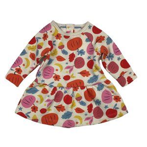 Mini Boden Girls 0-3 month Fall Pumpkin Leaves Long Sleeve Dress Cotton Blend