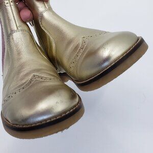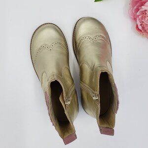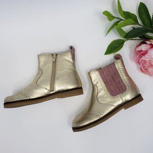 Mini Boden Girl's Ankle Boots Size 13 Gold Leather Pink Suede Wingtip Chelsea