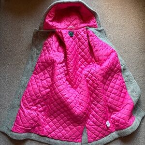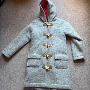 Mini Boden Girls Gray Wool Hooded Duffle Coat Toggles Pink Accents | Size 11-12Y