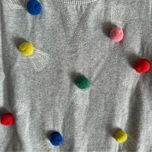 Mini Boden Girls POM POM Badminton Sweatshirt Grey Sz 3-4Y