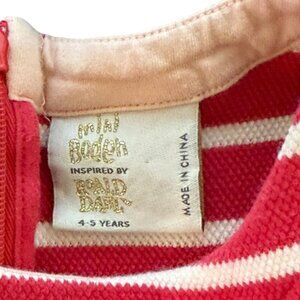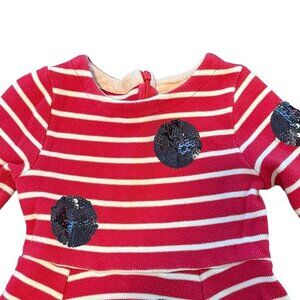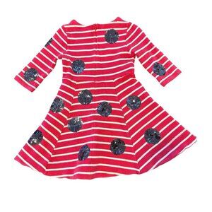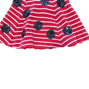Mini Boden Girls Red White Striped Dress Sequin Polka Dots Long Sleeve 4-5 year
