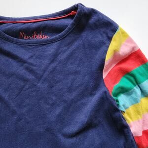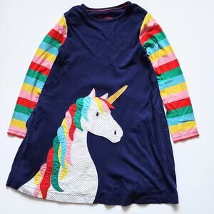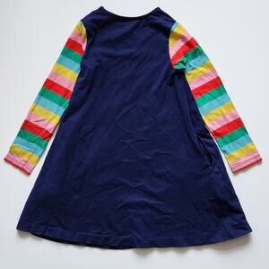 Mini Boden Girls Unicorn Dress Navy Rainbow Sleeves Size 7-8 (128 cm)