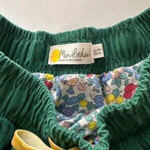 Mini Boden Green Corduroy Skirt 6-7 With Floral Lining & Yellow Bow Accent