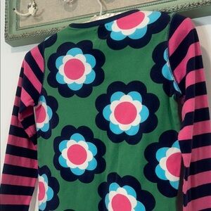 Theme back to school flowers floral retro 70s print mix, print stripes patterns, eclectic eccentric, bold, colorful, unique, stand out long sleeve fall winter spring kids, clothing, trendy