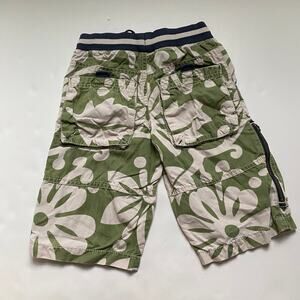 Mini Boden green tropical shorts, size 4y. Washed cold & hung dry. Play for missing zipper pulls & overall age. Lots of life left.