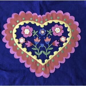 Mini Boden sleeves tank top in royal blue. Fun heart shaped appliqué with flower embroidery details. Very good condition, minor wear. Size 11/12.