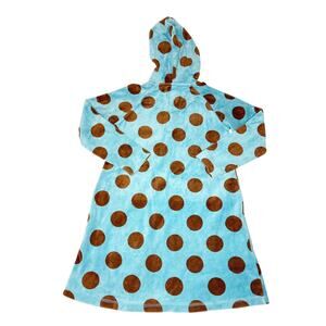 Light blue hooded cover up dress with all over brown polka dots. Kangaroo pocket on the front. Dress is in very good used condition and shows minor wash wear. No holes or stains. Size: 5-6Y.