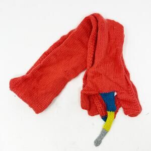 Mini Boden Kids Fall Winter Knitted Fox Animal Scarf Wrap Shawl 11-12Y Orange