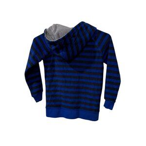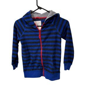 Mini Boden Kids Striped Hoodie 6-7Y Blue & Black Soft Cotton Blend Red Zip Closu