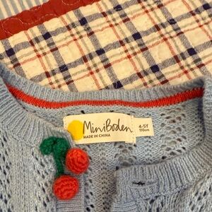 Mini Boden Light Blue Cardigan with Red Cherry Detail EUC