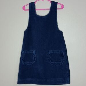 Mini Boden Navy Corduroy Overall Dress with 2 Front Ruffle Edge Pockets and Zip Back. Max Studio Overall Dress with 2 Front Pockets, Strap and Side Buttons. Zella Lightweight Sweater Top with Ruched Sleeves. All in Excellent Condition.