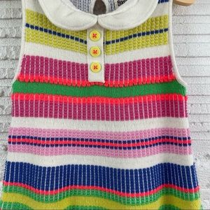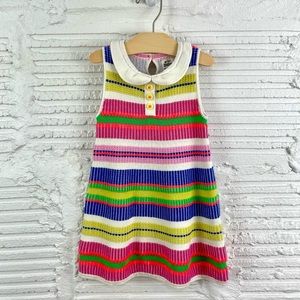 Mini Boden Multi Color Stripe Knit Sweater Dress Peter Pan Collar Size 2-3Y