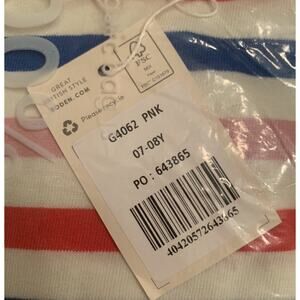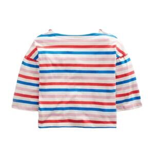 NWT! Mini Boden Blue, Red, and Pink Striped Boat Neck Tee. Size 7-8 yrs.