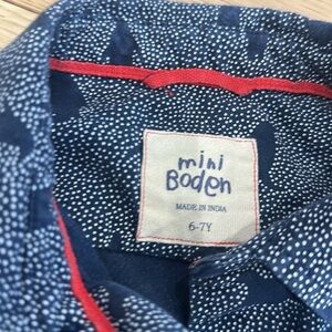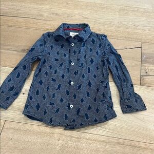 Mini Boden Navy Blue Kids Shirt penguin button down 6/7 Y