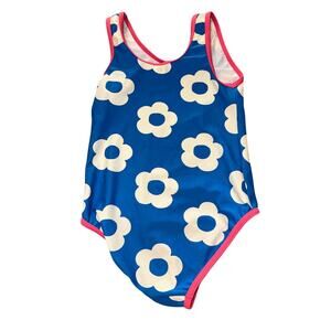 Mini Boden One Piece Flower Swimsuit Size 7-8Y 128cm Blue White Pink
