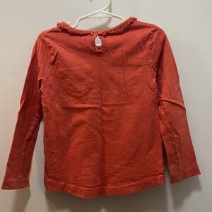 Mini Boden Orange Long Sleeve Tee with Ruffled Neckline & Front Pocket Size 4-5