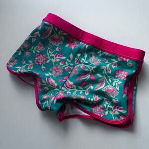 What's that we see in the water – a swimming champion wearing brightly patterned shorts? This design comes eye-popping prints and has a contrasting colour waistband and binding on the legs for a sporty finish.