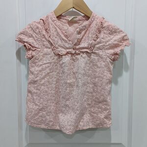 Mini Boden Pink Eyelet Blouse Shirt Top Spring Summer Girls Size 7 8