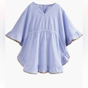 Mini Boden Pompom Cotton CoverUp Poncho Caftan - size 7-8.