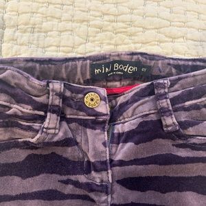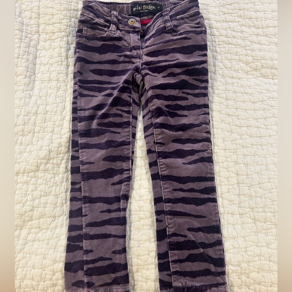 Mini Boden Purple Striped Velvet Pants, Size 4T. Waist has buttons to adjust (see pic). Good condition - some minor wash wear. Comes from smoke-free, pet-free home.
