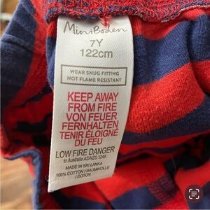 Gently worn boy's size 7 mini boden blue and red striped pajama bottoms. Elastic waistband, banded bottoms, comes from a smoke free home, bundle with other items to save and minimize shipping cost.