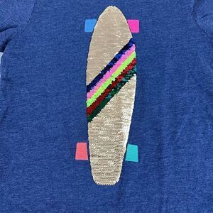 Mini Boden Sequin Skateboard Short Sleeve T-Shirt size 11-12 Years Blue