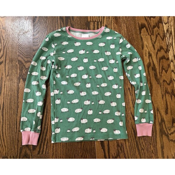 Mini Boden Sheep Pajamas Girls Size 8Y Green Pink Green Top Only 100% Cotton