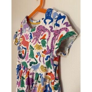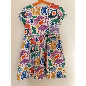 Mini Boden Short Sleeve Fun Colorful Animal Print Cotton Play Dress Sz 7-8