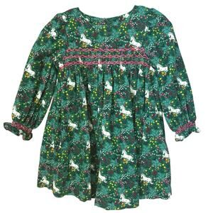 Mini Boden Smocked Unicorn Long Sleeve Fine Corduroy Holiday Dress Size 2/3Y