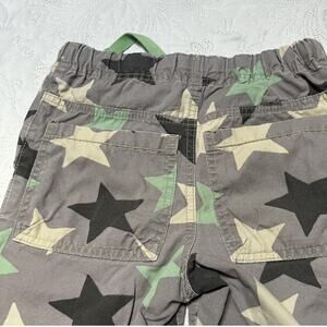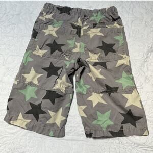 Mini Boden star print pull on shorts. Gray and green print baggies with drawstring waist and pockets. Play condition for overall wear / fading and a few spots. Size 7.