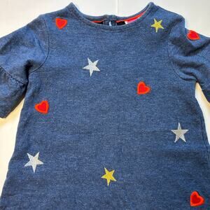 Super adorable Mini Boden dress. Ruffled sleeves with embroidered stars and hearts. In excellent condition. Smoke free and pet friendly (non-shedding) home.