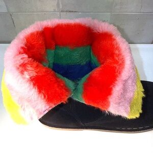 Multi Color Striped Faux Shearling Fur Lining Yellow Pink Red Green Blue