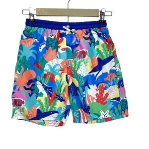 Mini Boden Swim Shorts Kids Size 9-10Y Multicolor Sea Reef Print Drawstring ocean beach summer colorful fish octopus shark turtle