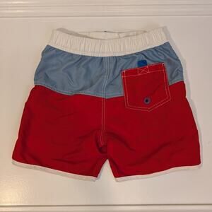 Mini Boden Swim Trunks Board Shorts Classic Red Blue Shark Surf - Size 9/10