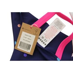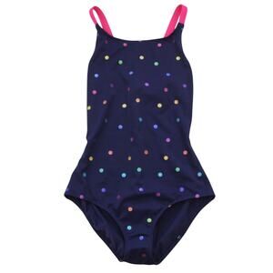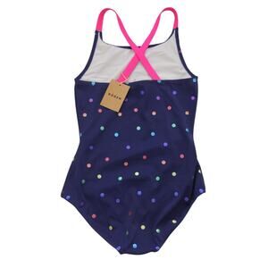 Mini Boden Swimsuit NWT Girls 11-12 Navy Rainbow Foil Confetti Dot Cross-back