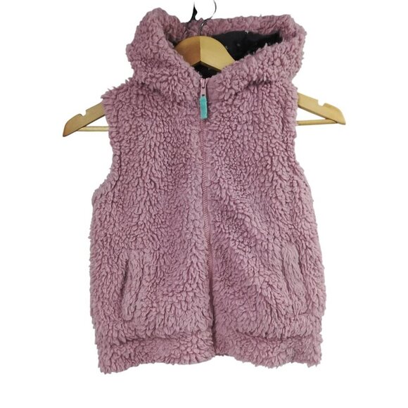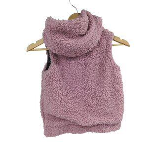 Mini Boden Teddy Bear Fleece Hooded Vest Size 5-6Y Pink Blue Stars Kids Faux Fur