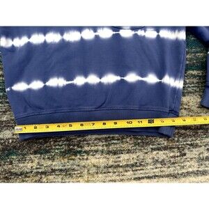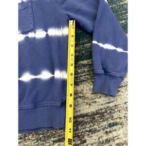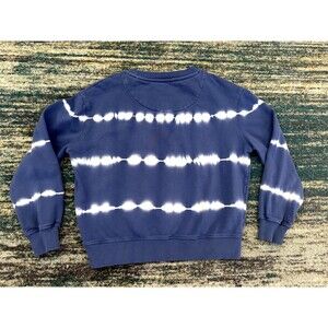 Blue pullover crewneck sweatshirt with white tie dye stripes