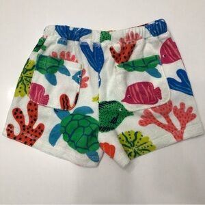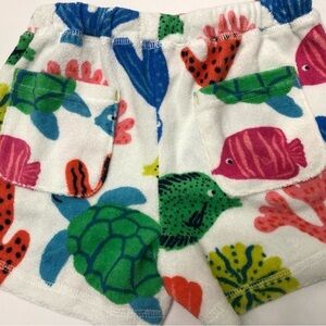 Mini Boden Towelling Shorts Multi Giant Fish Print Size 7Y/122 cm are simply adorable!! Great shorts for the beach or for any summer activity. So comfy, playful and fun!