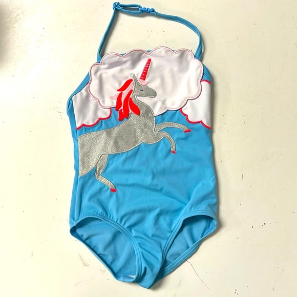 Mini Boden Unicorn One Piece Halter Swim Suit 3/4