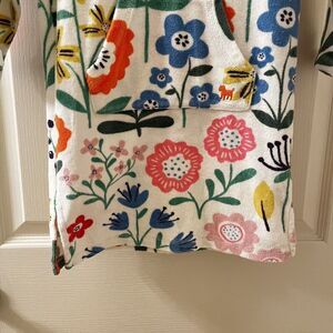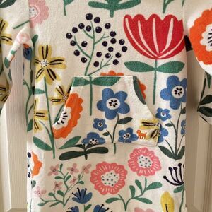 Mini Boden White Floral Swim Dress Cover Up Towelling Terry Hooded Girls Size 3-4. The Mini Boden towelling swim dress terry cover up is my favorite for the pool, just pullover your suit when you get out of the water. Adorable floral print, hooded and a kangaroo pocket in the front. Has been used, some normal wear to the terry material, some slight pulls and pilling to the material and hood lining, but still has a ton of life left. Good Used Condition.