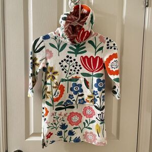 Mini Boden White Floral Swim Dress Cover Up Towelling Terry Hooded Girls SZ 3-4