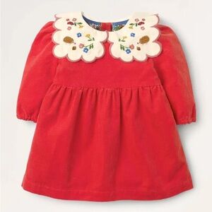 Mini Boden corduroy dress embroidered collar scalloped long sleeve toddler girl