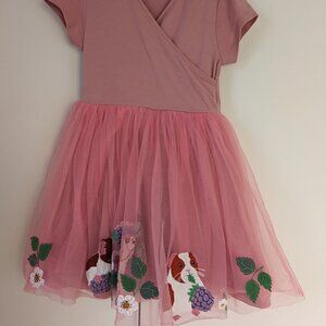 Mini Boden guinea pig appliqué tulle ballet dress in size 6 - 7Y. Excellent condition. Very small hole in one layer of tuile as seen in last picture. (very hard to see, because it is so small).