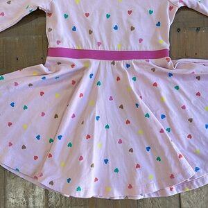 Pink with all over hearts Skater style skirt Small spot on front Minor wash wear 2-3 years